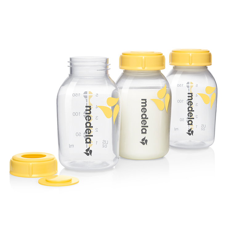 Medela 奶瓶為防摔型,有兩種不同規格: 150ml(3 只裝)和 250ml(2 只裝) 其可與所有 Medela 吸乳器和奶嘴配合使用。