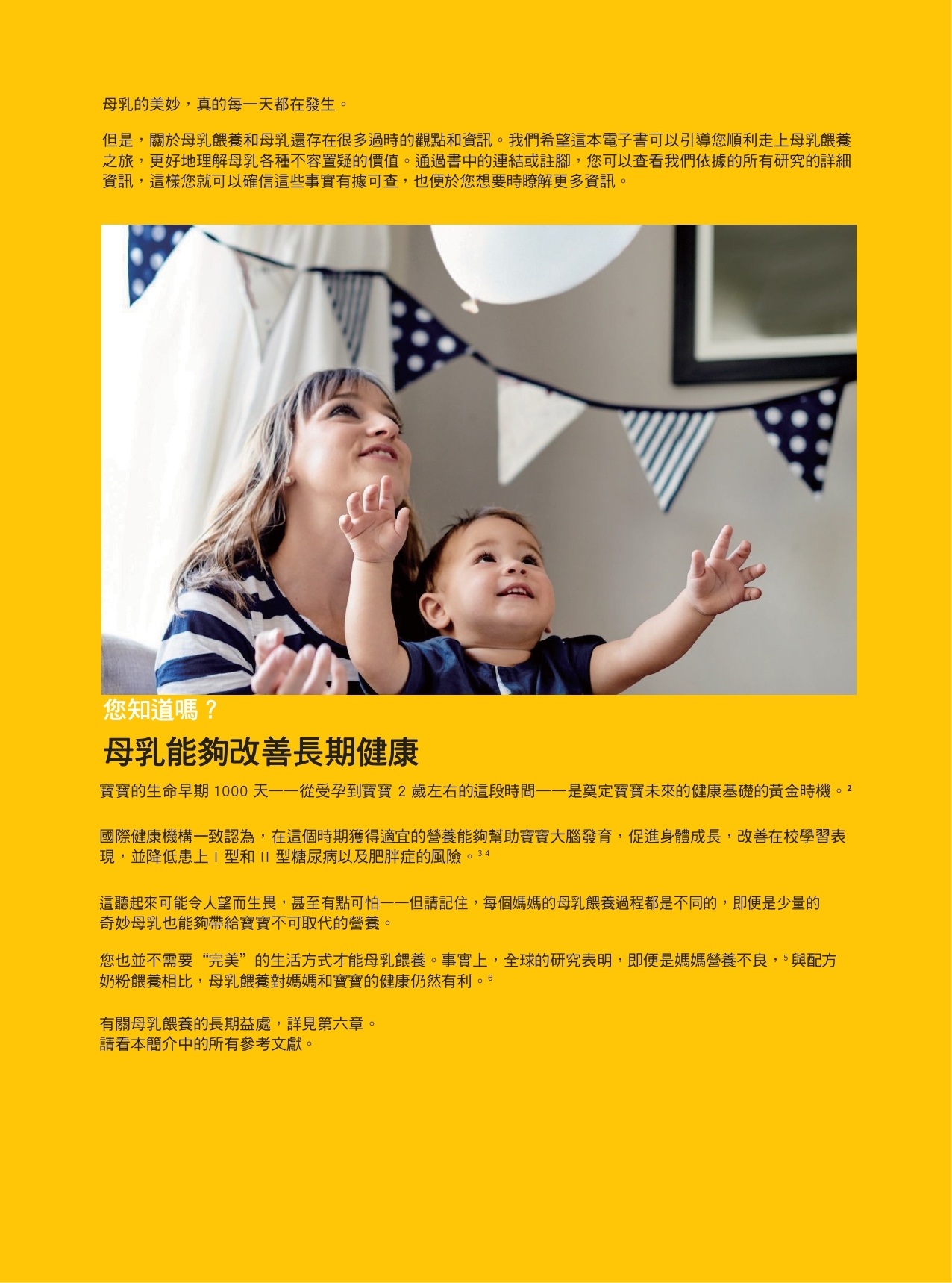 但是,關於母乳餵養和母乳還存在很多過時的觀點和資訊。我們希望這個專輯可以引導您順利走上母乳餵養之旅,更好地理解母乳各種不容置疑的價值。通過書中的連結或註腳,您可以查看我們依據的所有研究的詳細資訊,這樣您就可以確信這些事實有據可查,也便於您想要時瞭解更多資訊。