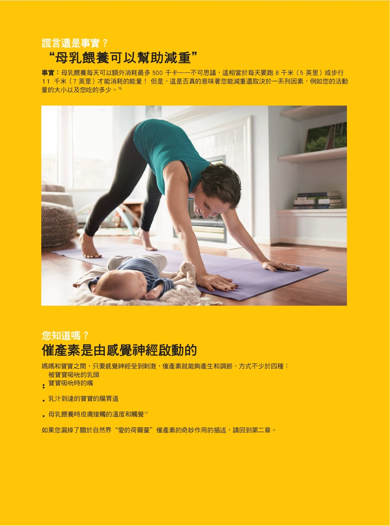 母乳餵養每天可以額外消耗最多 500 千卡——不可思議,這相當於每天要跑 8 千米(5 英里)或步行11 千米(7 英里)才能消耗的能量!