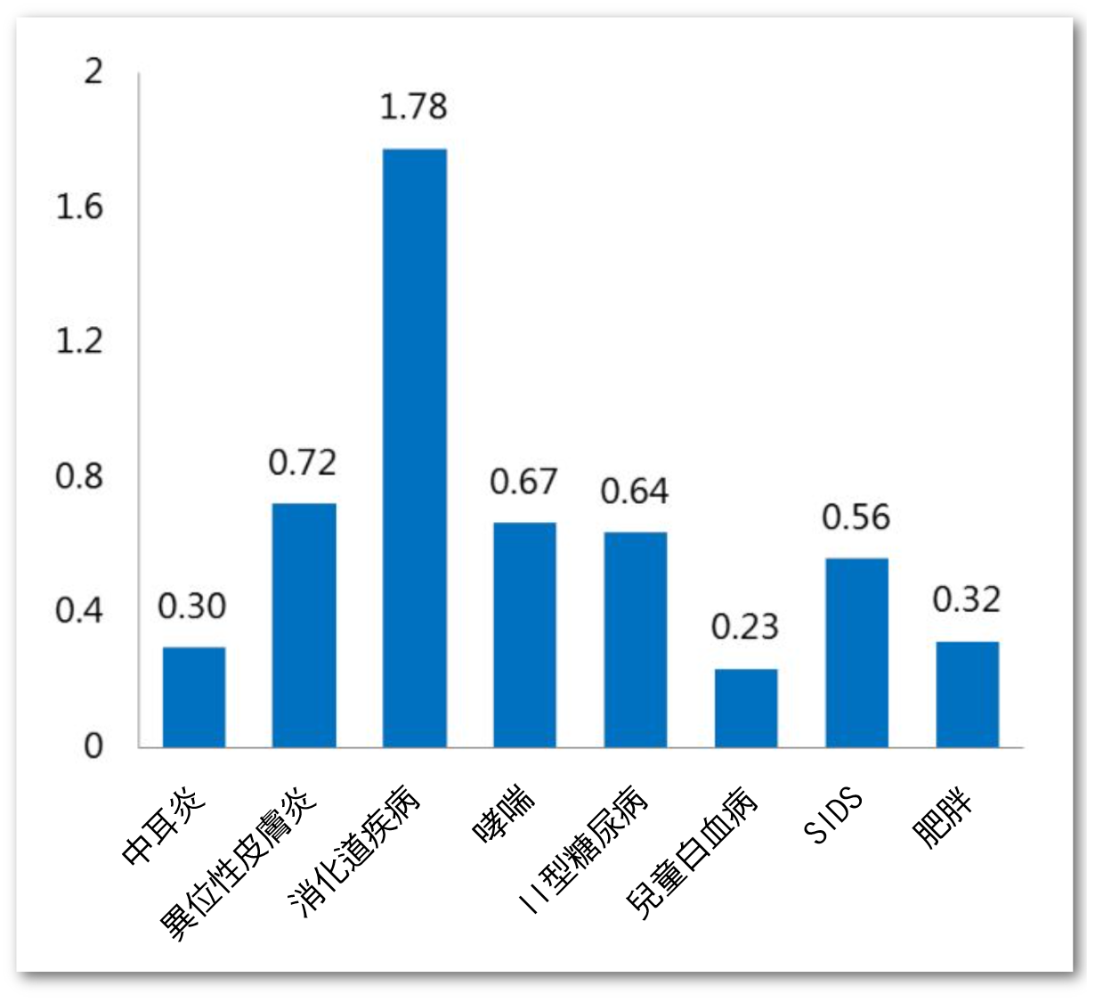 研究發現,與母乳餵養相比,人工餵養可以增加新生兒感染、過敏或肥胖等風險,特別是消化道疾病,究其原因,新生兒那麼小那麼脆弱,剛來到這個世界,緊張焦慮不安,需要慢慢建立他的免疫功能,來抵禦致病菌、病毒等的侵襲,而母乳可以提供對應的抗體等,給寶寶私人訂製般的保護,這是配方奶無法比擬的。