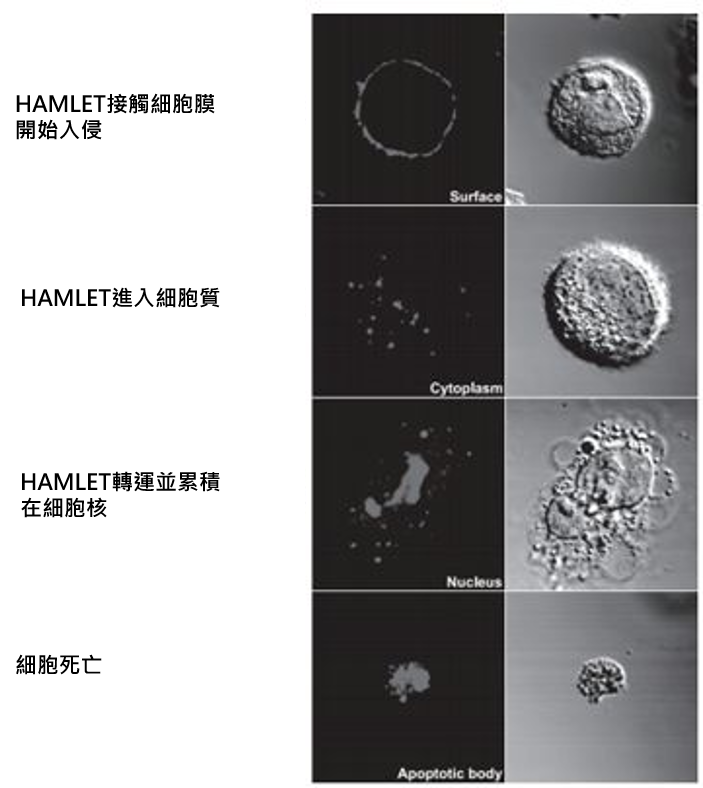 對腫瘤細胞具有致命性的人α-乳清蛋白(簡稱HAMLET)殺死腫瘤細胞的機制