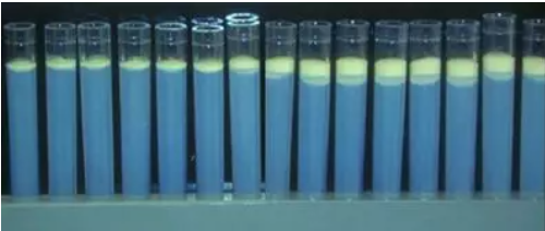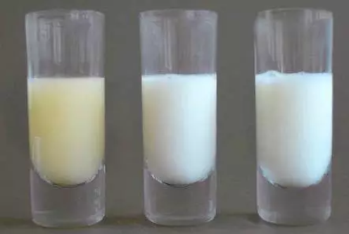 一次奶,按時間順序排列,離心測脂肪,左邊是前奶,脂肪含量少,右邊是後奶,脂肪含量多。