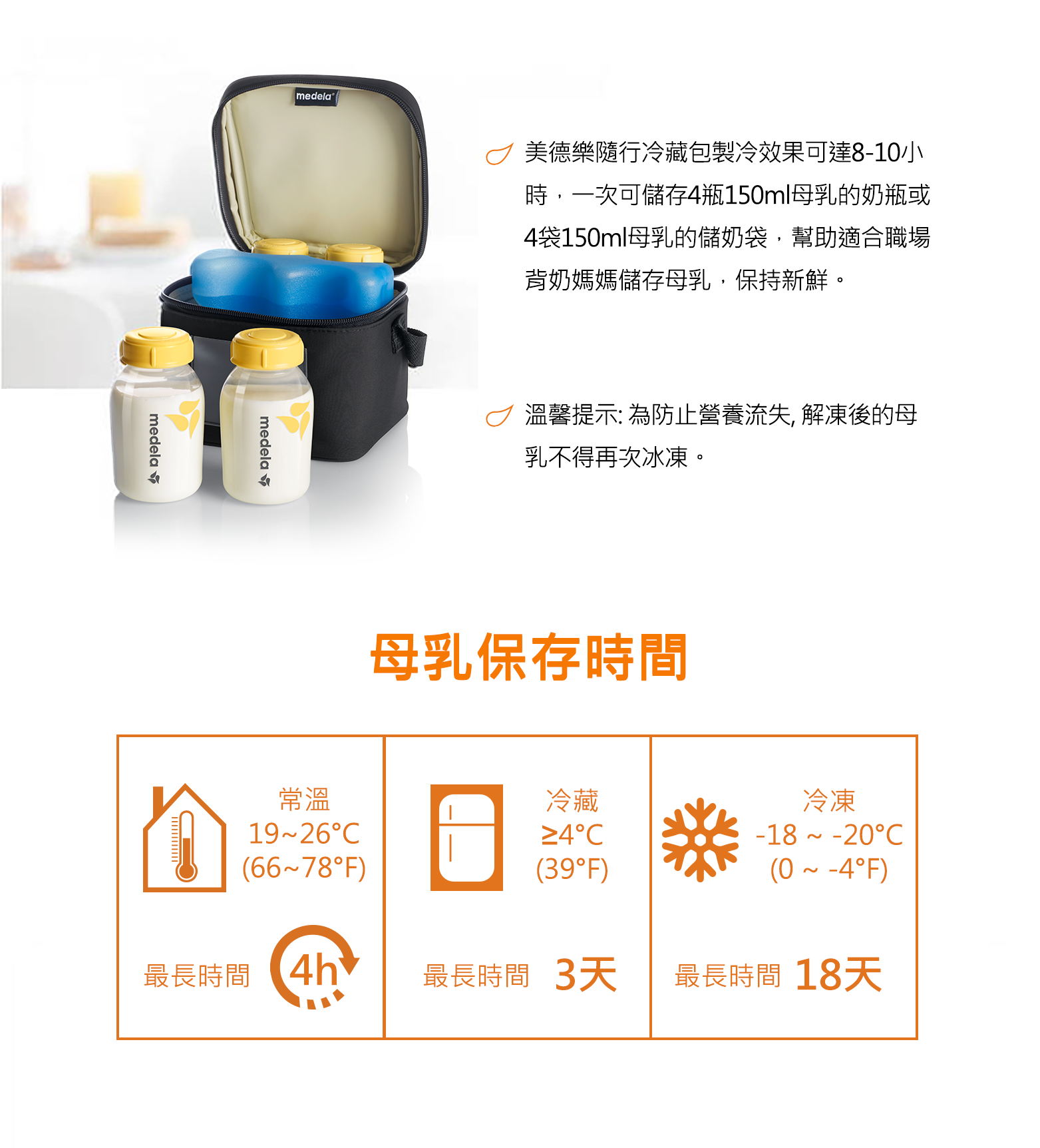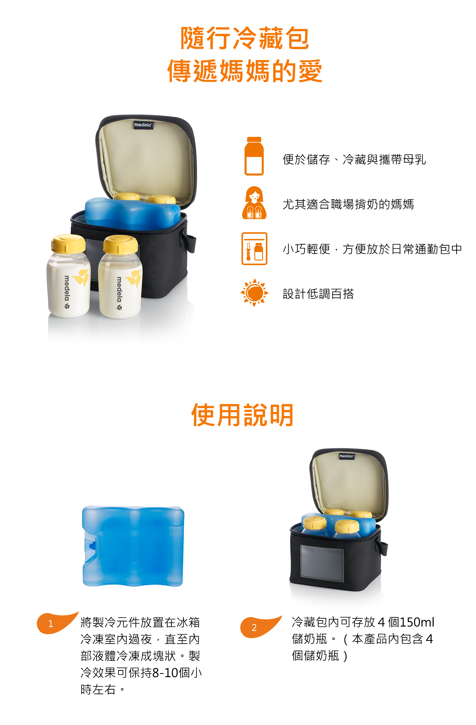 Medela 冰包是媽媽外出時冷藏母乳的首選佳品, 可用作哺乳媽媽下班後把母乳帶回家的備用儲奶容器,同時也適用於留在日託中心。冰包呈波狀形、線條優美,適合與 Medela 奶瓶配合使用,冰包的內部保溫層令吸出的母乳長時間保持低溫,可最大限度延長母乳儲存時間。