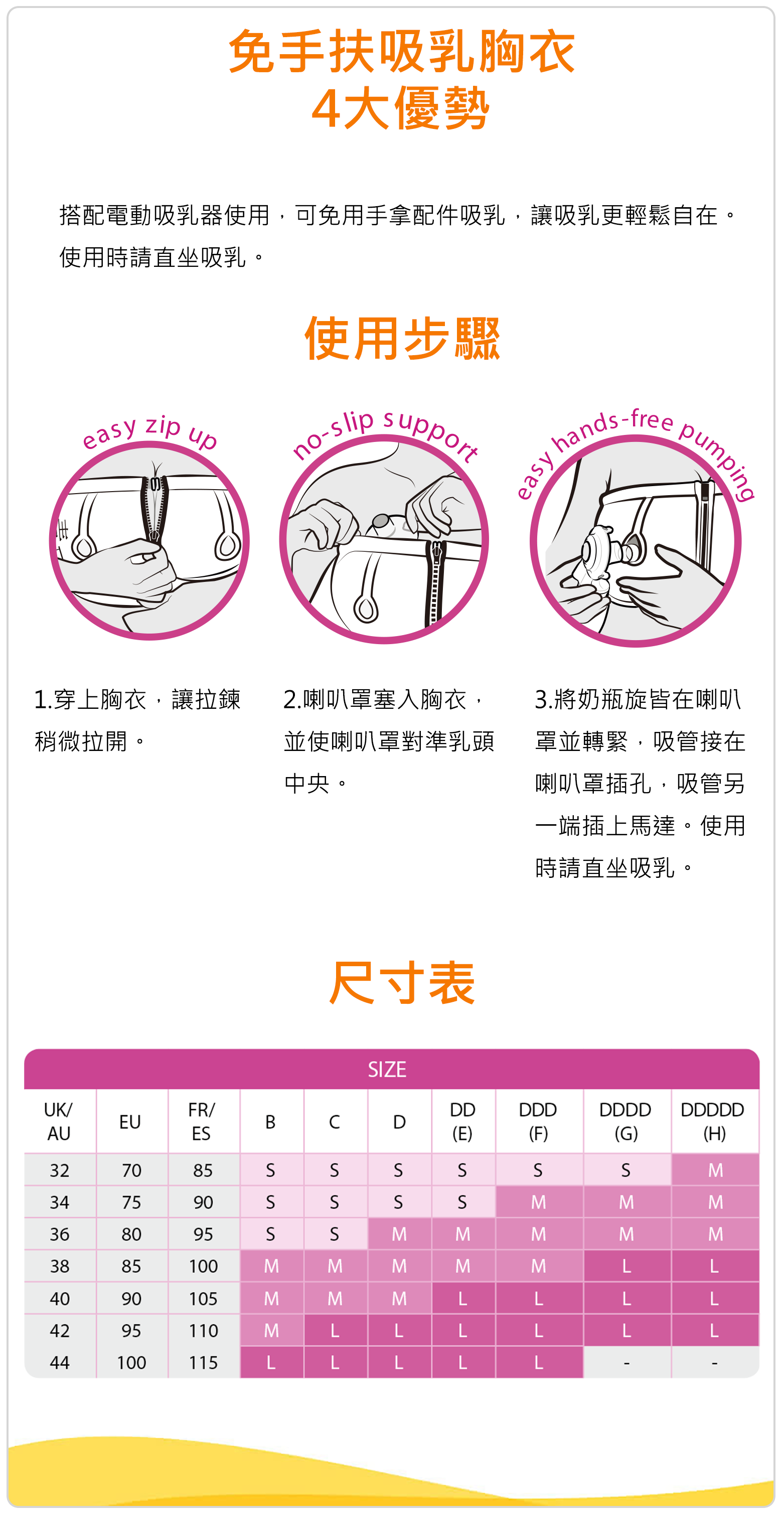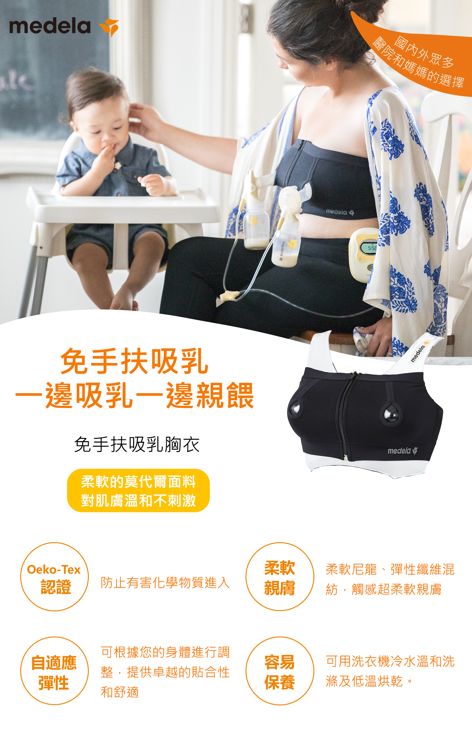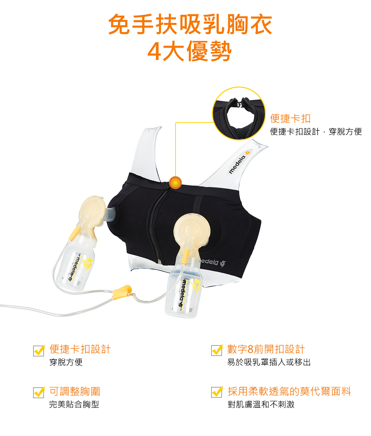 採用柔軟透氣莫代爾面料,可調節胸圍,完美貼合胸型;便捷8字前開扣設計,易於吸乳護罩插入或移出;配合美德樂雙邊電動吸奶器實現免手扶吸乳,或吸乳親餵同時進行,讓哺育體驗更快捷、更簡單、更私密。