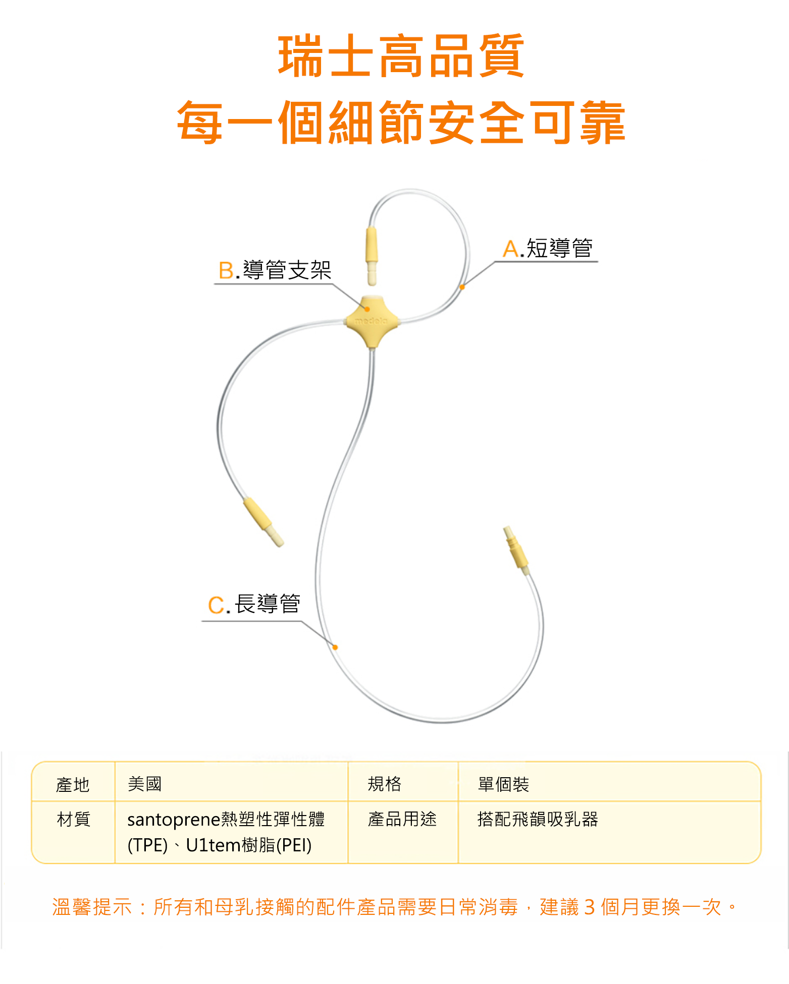 medela美德樂 Freestyle 飛韻電動雙邊吸乳器專用配件 /自由機 導管