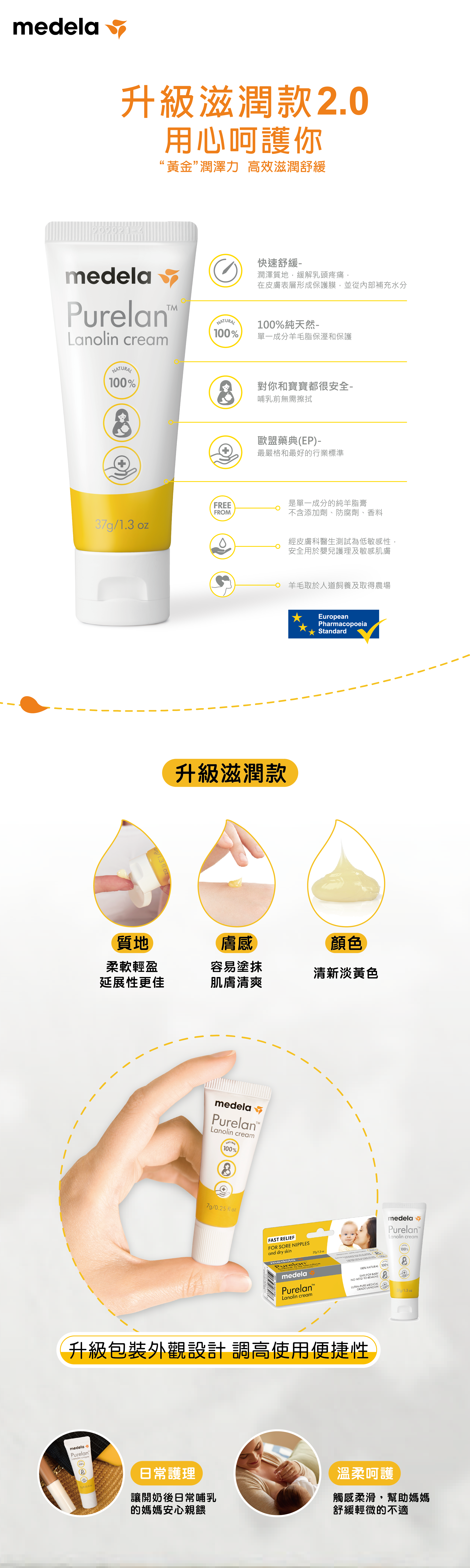 Medela Purelan™ 2.0 美德樂 純羊脂膏2.0 可以提供自然舒緩的護理和保護 ——