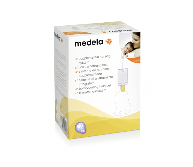 Medela 的補充護理系統 (SNS) 可供想要在乳房或胸部餵養的父母使用,它也可用於需要額外支撐以保持吸吮的嬰兒。促進和嬰兒之間的連結和皮膚接觸,有助於鎮定和舒適。